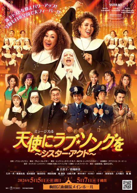 『天使にラブソングを…』のタイトルで日本でも大ヒットした映画がついにミュージカル化!ミュージカル版を製作したプロデューサーはなんと、映画で主演を務めたウーピー・ゴールドバーグ本人!という話題沸騰の中、2009年にロンドン・パレイディアム劇場で開幕、各紙絶賛・連日スタンディングの大ヒット公演となりました。評判は世界を駆け巡り、2010年にはドイツ・ハンブルグ、2011年には満を持してブロードウェイに進出、トニー賞5部門のノミネートを受けるなどの快挙を達成!そして満を持して2014年に日本初上陸となって帝劇公演は、「一緒に踊ろうカーテンコール」の大熱狂とともに連日満員の客席に笑いと感動が舞い降り、2016年には早くも帝劇で再演され、続く2019年~2020年、2022年~2023年にかけての全国ツアー公演も各地で大フィーバーを巻き起こしました! そして、 またまた熱いご要望にお応えして、2026年に新たなキャストを迎えてさらにパワーアップした『天使にラブ・ソングを~シスター・アクト~』が日本全国を縦断いたします!!
