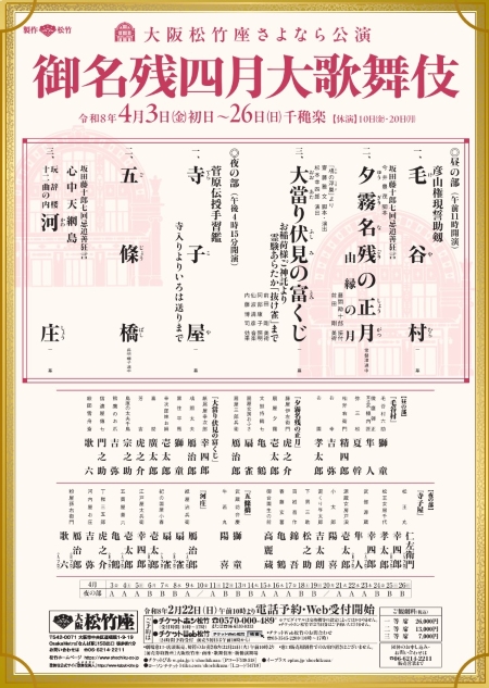 ※公演日、上演時間、出演者、演目などが急遽予定変更となる場合がございます。あらかじめご了承ください。