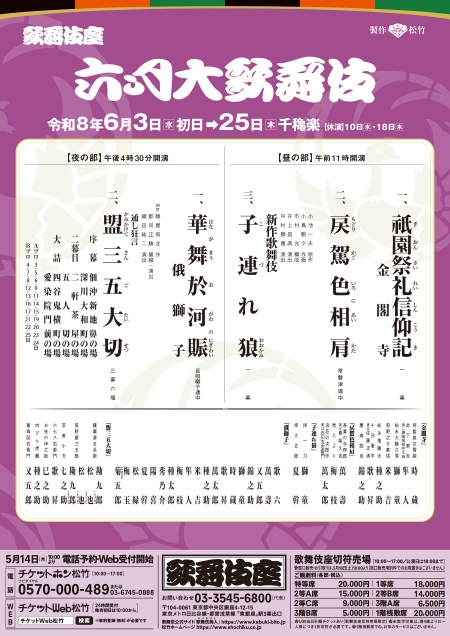 ※公演日、上演時間、出演者、演目などが急遽予定変更となる場合がございます。あらかじめご了承ください。