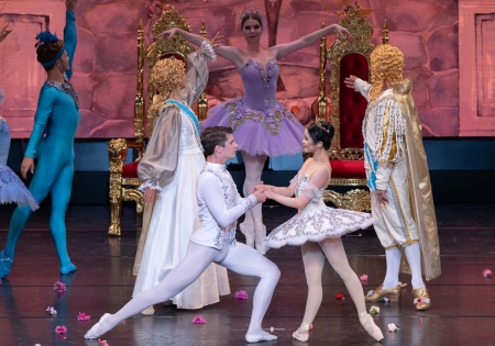 華やかで優雅な『くるみ割り人形』の”花のワルツ”から大団円へと続き、コール・ド・バレエの壮麗な群舞が魅せる『白鳥の湖』第1幕第2場へ。さらにハイライト形式でお届けする『眠れる森の美女』では、青い鳥や長靴をはいた猫、赤ずきんちゃんなど、おとぎ話の主人公たちが華やかに舞い踊ります。